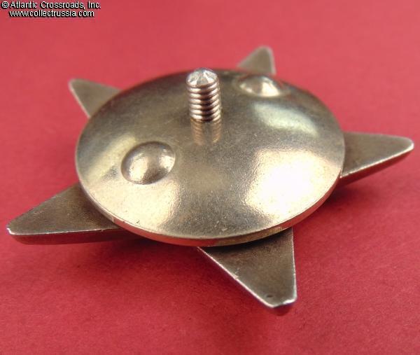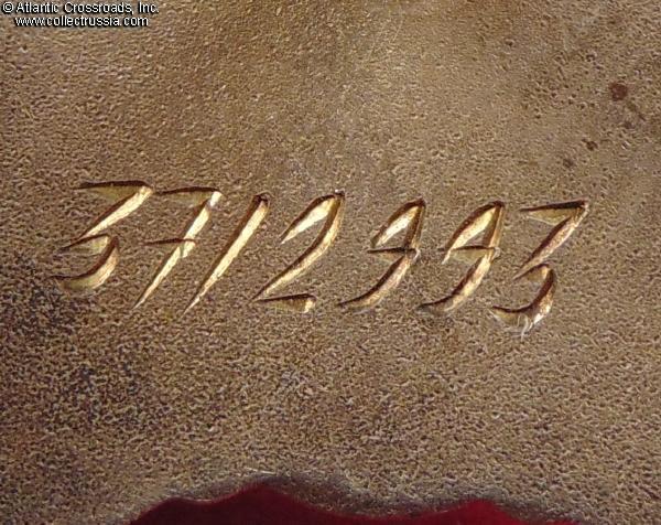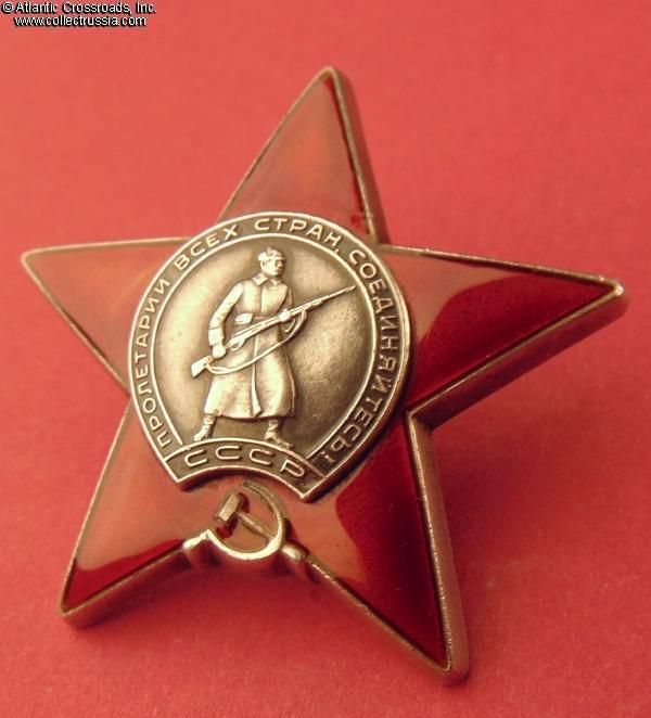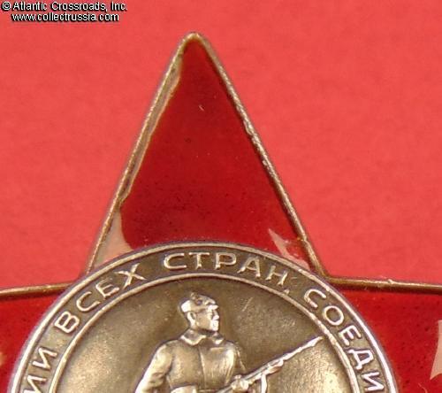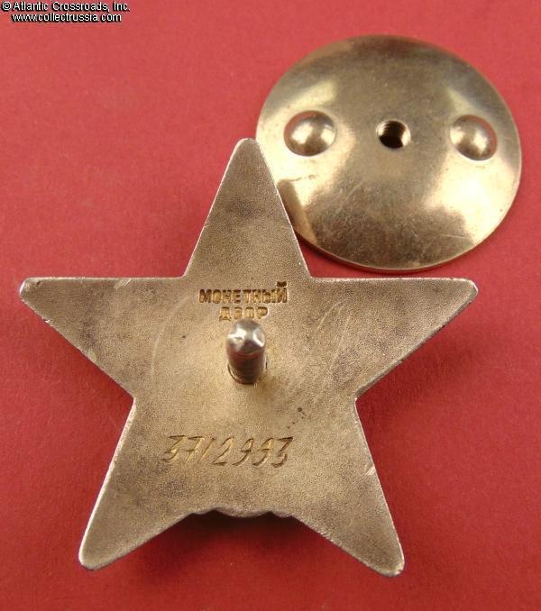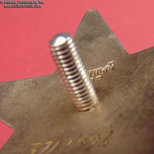 Silver, enamels; 45.9 mm tall x 48.1 mm wide; weighs 30.6 g without the screw plate. Features the Type 7 medallion (according to Strekalov classification) and relatively blunt tips of the arms (as compared with the earlier issues). The toe of the soldier's right boot (left to the viewer) is turned sharply to his right. The character "Д" of the mint mark has a flat top. The order was manufactured in 1957 at the Moscow Mint.