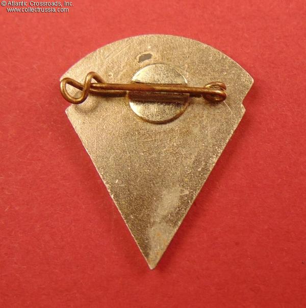 The badge stands out not only by its peculiar conical shape and nice quality, but also in its unusual reference to the original pre-WW2 name of the enterprise.