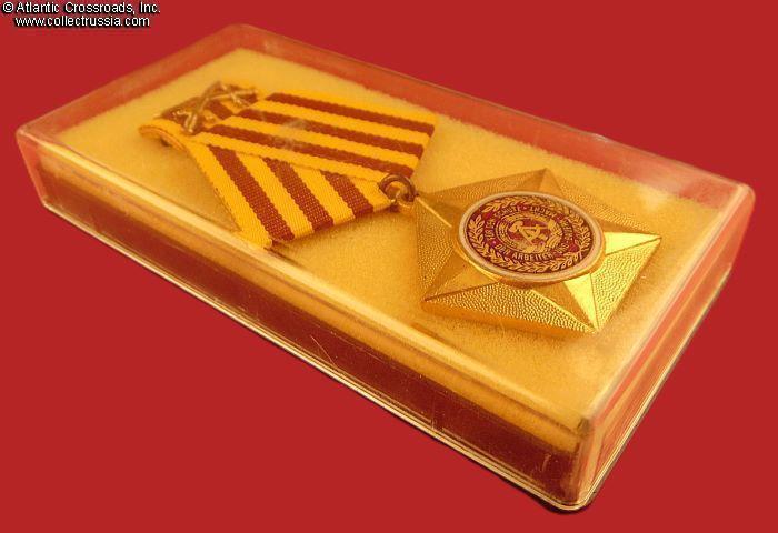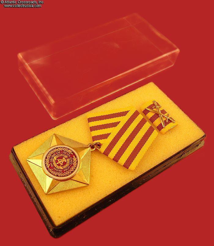 The order (original name "Kampforden für Verdienste um Volk und Vaterland" was instituted on 17 February 1966, in three classes: bronze, silver, and gold. It was the second highest military decoration in the German Democratic Republic, awarded to members of the NVA for outstanding service or merit in heightening the combat strength and readiness of the National People's Army; safeguarding the state borders of the German Democratic Republic; or strengthening and improvement of the socialist home defense.
