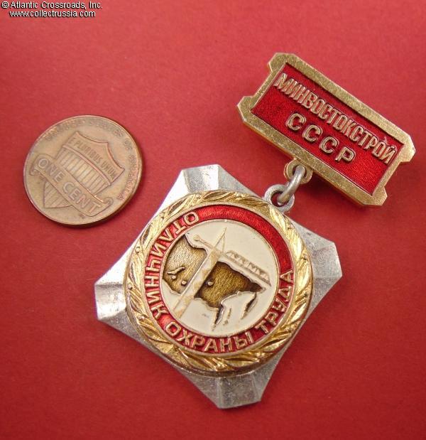 Badge of an Excellent Labor Safety Specialist, Ministry of Far Eastern Construction of the USSR, circa 1970s-80s.