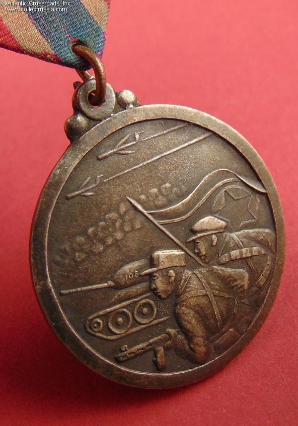 Established in 1953, the medal was awarded during 1954-55. It was issued to partisans, Chinese People's Army "volunteers" who had fought in the Korean War, North Korean combatants who had been honorably discharged from the military prior to the end of the war, and non-combatants who had contributed to the war effort. In general, the medal is fairly common, but it is rare to find in a condition as pristine as the example offered here.