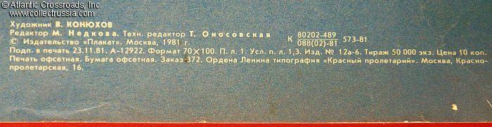 Measures 37" x 25 ¾", published by the PLAKAT ("Poster") Publishing House, Moscow; circulation 50,000.