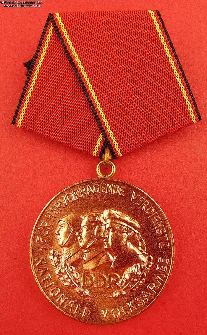 The medal (original name " Verdienstmedaille der Nationalen Volksarmee") was established on 1 June 1956 in three classes - bronze, silver, and gold, awarded for outstanding merit and personal readiness in support of increased combat capabilities and readiness of the National People's Army.