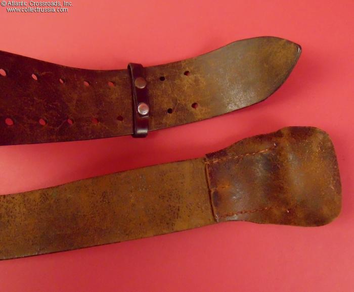 Includes a leather keeper loop in matching leather which is not original to the belt but is roughly of the period and fits nicely.
