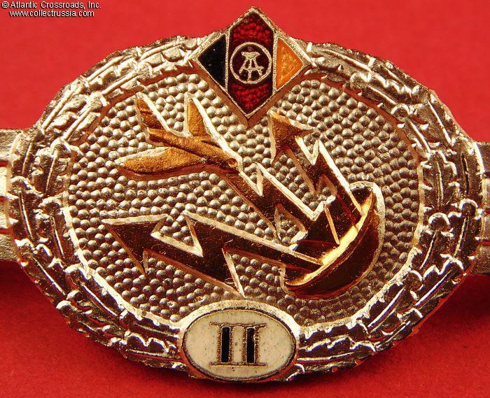 In 1990s, the original East German manufacturer PRAWEMA made a restrike of this rare early 2nd cl. classification badge for Air Force Radio Operator / Signalman ("Klassifizierungsabzeichen fur Funkorter"). With the original examples extremely rare and costly, the PRAWEMA copies of these badges are becoming harder to find and are now collectable in their own right.