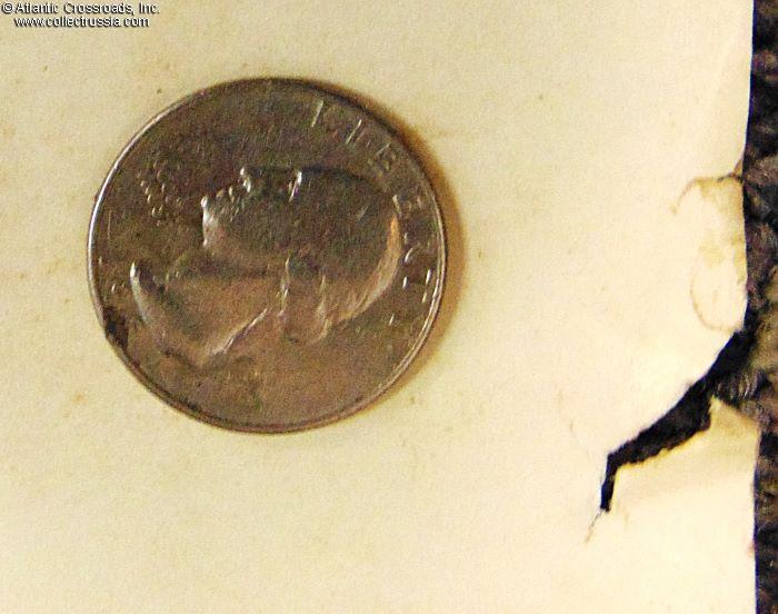 In very good to excellent condition, the only wear being two areas along the right edge showing small tears and creases (see photos with the quarter coin for size reference). As far we could see, there are no missing pieces of paper, so if desired and with due patience the paper can be straightened out and the tears repaired with acid-free tape on the verso.