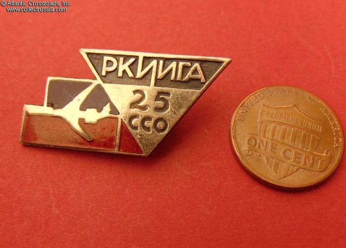 Soviet college student construction units (SSO) were organized during the summer for assistance in crucial areas of economic development. In the 70s-80s they were usually deployed in the Far East and North of the Soviet Union. Some of these labor assignments were quite popular and even competitive, as they often offered unusually high earnings to students otherwise chronically starved for cash. The 1985 SSO unit of the RKIIGA institute was probably deemed particularly important because of the 25th anniversary of the school - hence the unusually nice quality badge issued to its members.