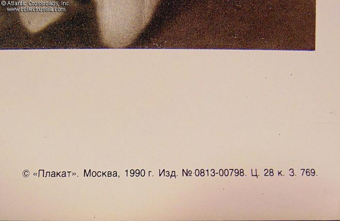 B/w photo printed on glossy high-quality heavy-stock paper. Published by the PLAKAT ("Poster") Publishing House, Moscow, circulation unknown. The image size is 15" x 23 ½", approx. 19" x 27" total with the margins.