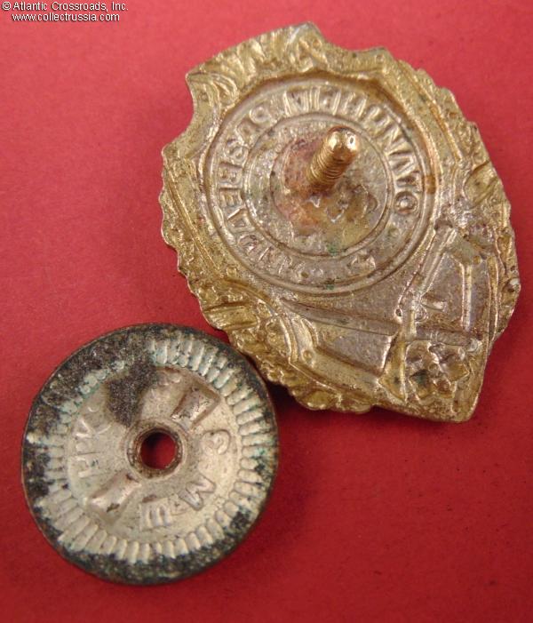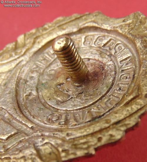 Brass, enamels; 46.4 x 36.1 mm; weighs 16.4 g without the screw plate. Early variation featuring a characteristically "square" overall shape, simplified wreath and tall ornament at the top. This early version of the Scout Badge has a rarity rating of 4 (rare) by B. Airapetyan. Uncommon bright silver finish on the edge of the shield and scrolls of the top ornament.