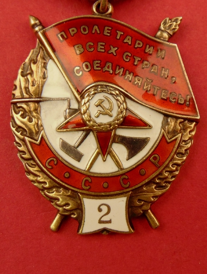 Order of the Red Banner, 2nd Award, Type 4, Var. 1, Sub-var. 3, #10853, c. 1945- 49. A relatively early suspension version in VF/EXC condition.