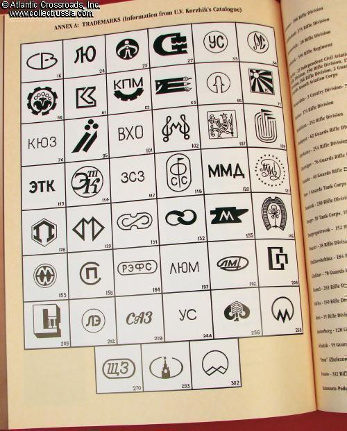 This booklet contains an informative introduction, over 400+ identified badges in color with their description and comments, logical arrangement system, a chart of 45 identified trademarks, bibliography, and photographs of veterans wearing their pins. Arranged by military units from the front level down to regiment with air force, naval, partisan, battle participants, specialized units, and even some badges of unknown provenance.